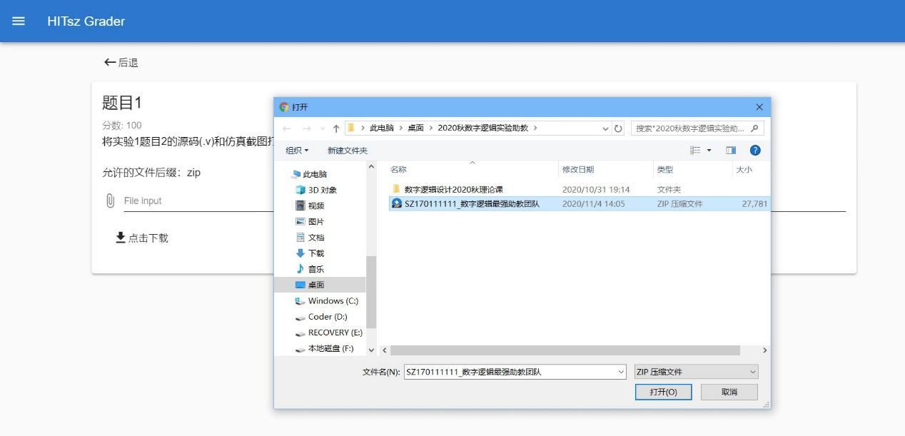 (3)注意提交作业时文件压缩包后缀目前仅支持.zip;