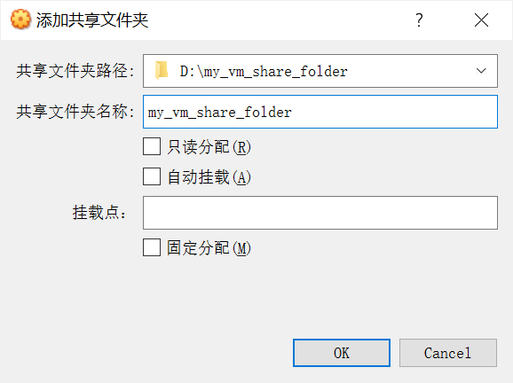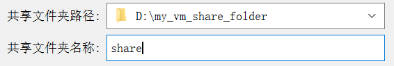 扩展包安装完成后,在Windows主机的任意目录新建共享文件夹,如D:\my_vm_share_folder\。建议共享文件夹采用英文名且其中不含空格,以免出现bug。